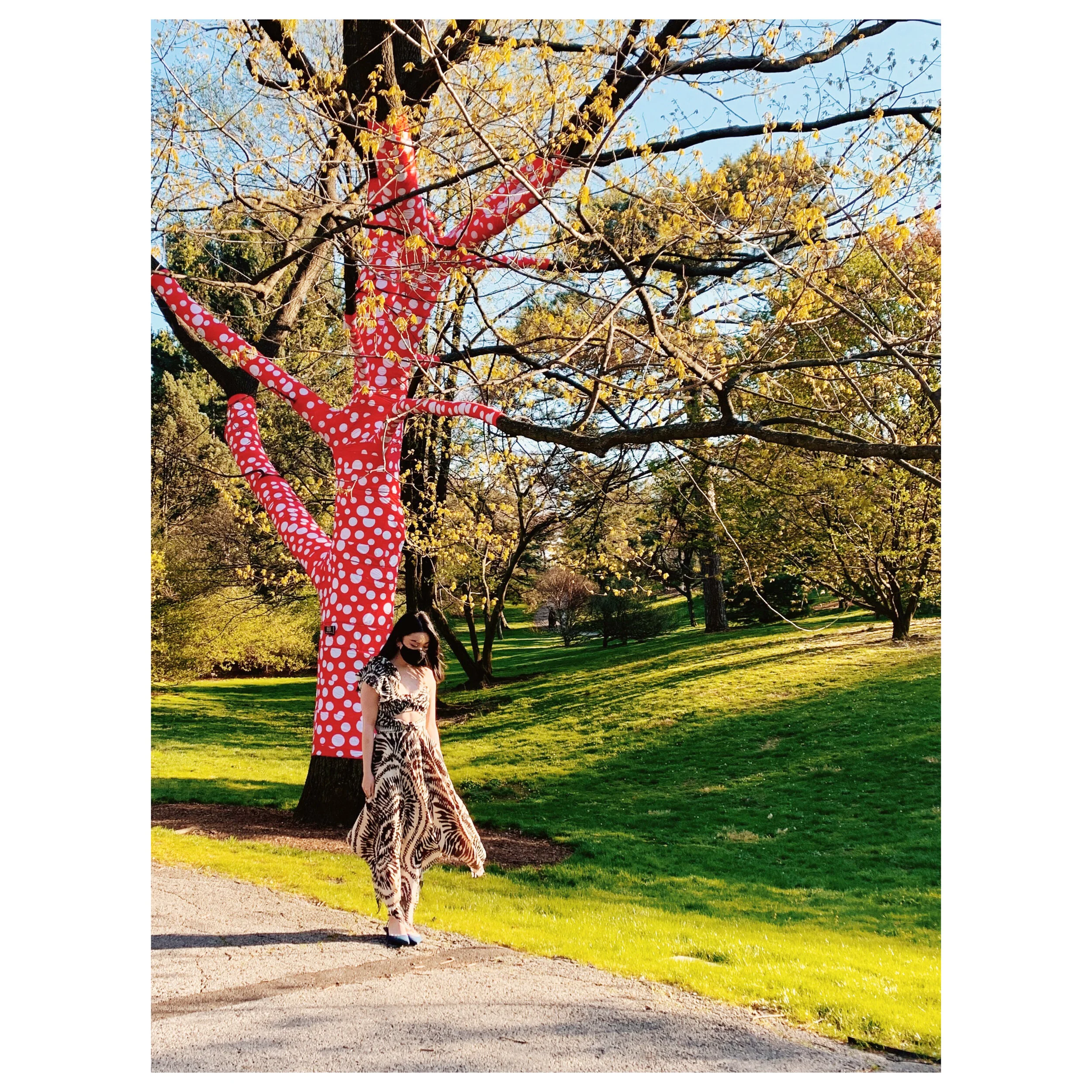 printed crinkle chiffon dress with nude charmeuse lining- made for an anniversary and worn at the New York Botanical Garden