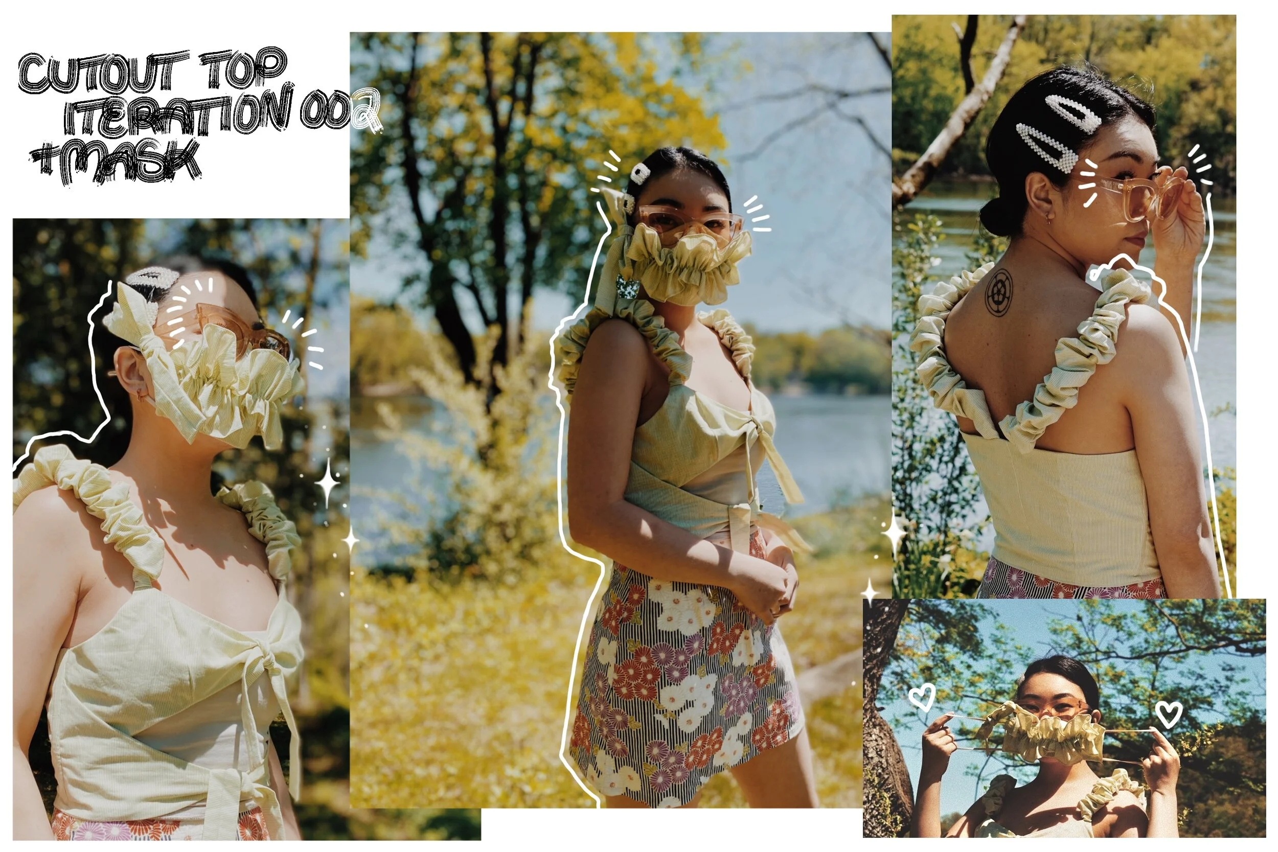 ruffle mask, scrunchie tie top (and floral mini skirt c.Summer of 2016)