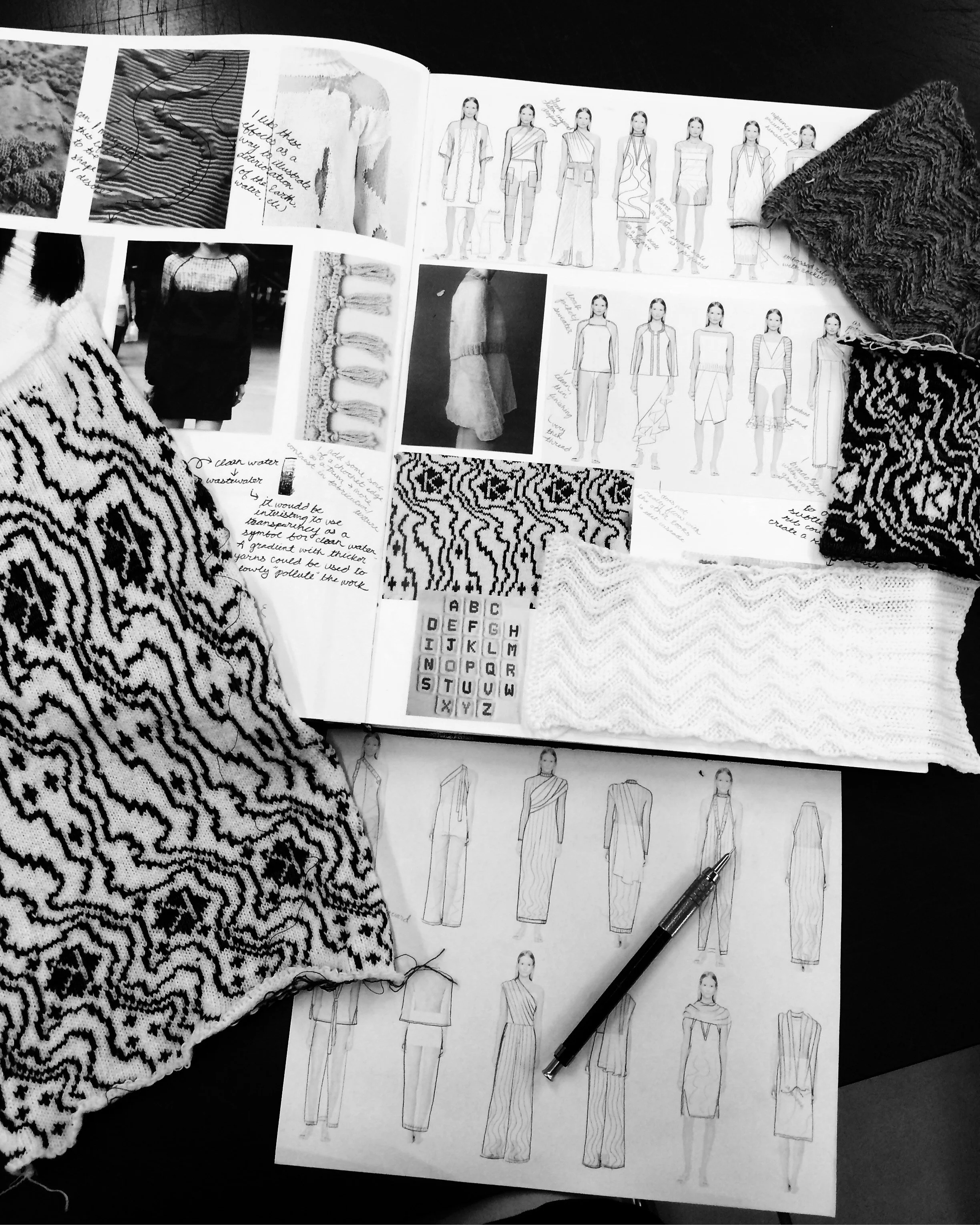 knit jacquard development from sketchbook - individual inspiration images not my own